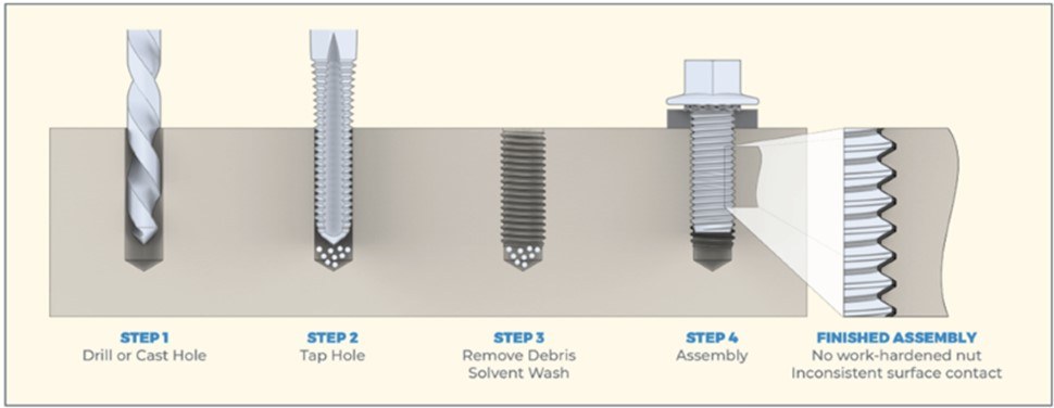 Since Henry Ford introduced the moving assembly line in 1913, the automotive industry and other industries have been ceaselessly trying to improve quality, accelerate production and lower cost. In the late 1950’s and early 1960’s a big thrust of this effort was to simplify and reduce the cost of assembly. A solution that came out of this era was the original TAPTITE® thread-forming fastener, a screw that could tap its own threads in untapped pilot holes or unthreaded nut members and provide a high-quality joint that is resistant to pull-out and vibrational loosening forces.